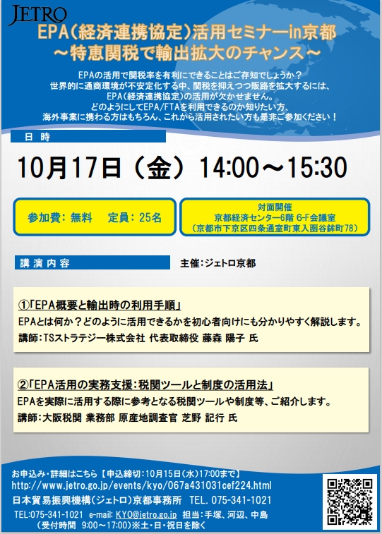 EPA(経済連携協定)活用セミナーin京都 ―特恵関税で輸出拡大のチャンス―